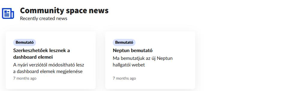 The Community space news block lists, in descending order based on the date of the creation, all news connected to the community spaces the user can view, but were not yet viewed.