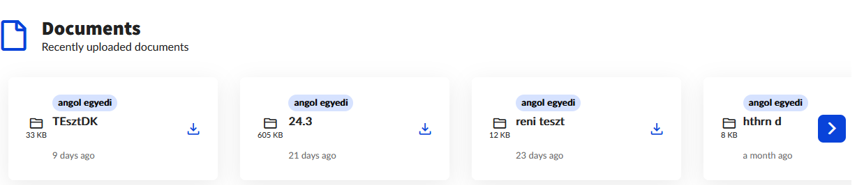 The Documents block lists all documents connected to community spaces the user has access to, which were not yet viewed by the user. The documents are shown in descending order based on the date of the uploading.