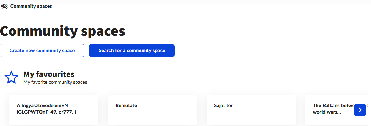 All the users' own community spaces appear in the My favourites block independent of their type, that are added to the Favourites with the XXX icon on the Community spaces details screen.