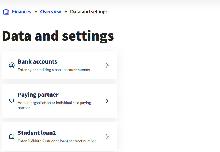 2. The recorded contract number can also be deleted on the Finances/Data and settings screen by clicking the Student Loan2 card. In this case the contract number is deleted from all selected items.