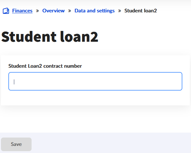 The student can record the contract number of the Student Loan2 on the Student Web Interface, then select the item(s) that he or she would like to finance with Student Loan2. The contract number can be recorded on the Finances/Data and settings/Student Loan2 screen.