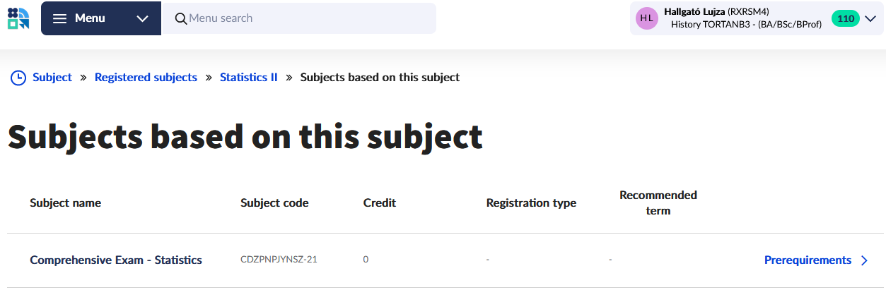 Clicking Prerequirements displays the pre-requirements of the subject based on the given subject, so it is seen what type of pre-requirement the subject is in relation to the one based on the given subject.