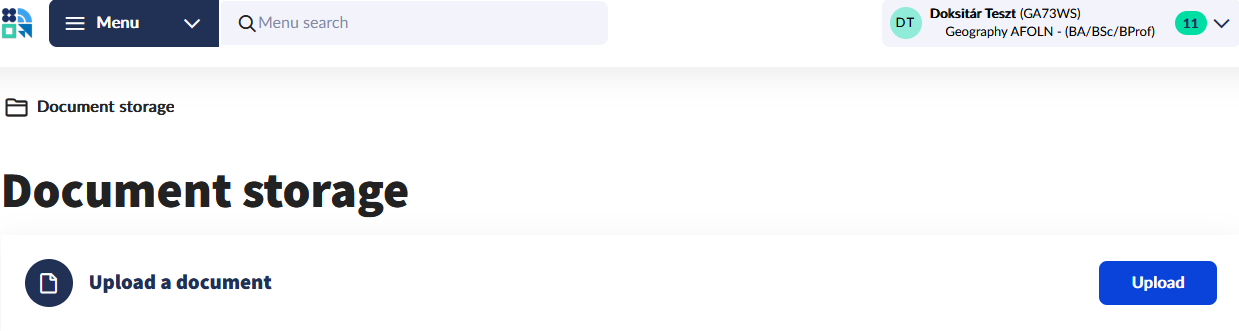 The Upload button is available on the Upload a document card on the overview screen of Document storage menu item.