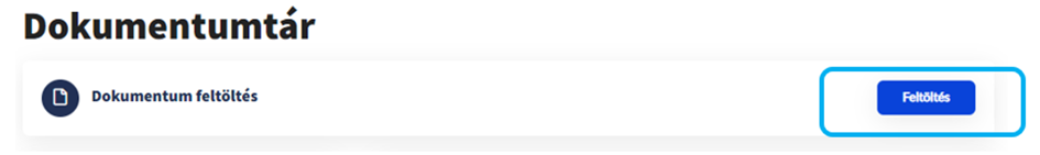 A Dokumentumtár menüpont áttekintő nézetében a Dokumentum feltöltés kártyán elérhető a Feltöltés gomb.