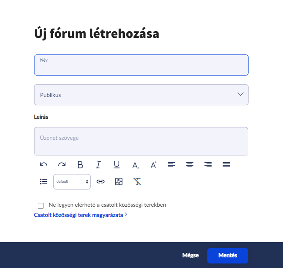 A felületen a Szerkesztés gombbal a közösségi tér adminisztrátora jogosult a fórum témát módosítani.