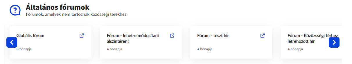 Az Általános fórumok blokkban minden, közösségi térhez nem kapcsolódó olyan fórum témák jelennek meg az aktivitás dátuma alapján csökkenő sorrendben, amelyeket még nem tekintett meg a felhasználó.